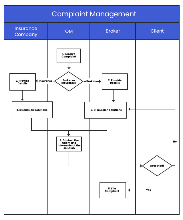 - Initial Review: Upon receipt, the complaint will be assigned to the relevant department or individual (e.g., claims, underwriting, customer service) for investigation.